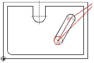 - da ohne Fräserradiuskompensation gearbeitet werden soll, muß eine Fräsermittelpunktsbahn (Äquidistantenbahn) programmiert werden