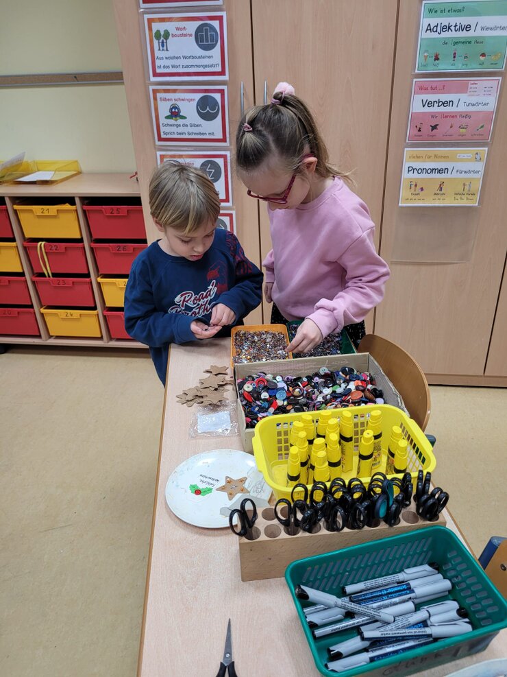 Die Schüler, die in der Schule blieben, bastelten Geschenkanhänger und andere weihnachtliche Dekorationen.