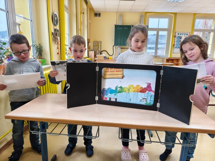 Am bundesweiten Vorlesetag lasen Schüler der 2. Klassen in der Kita Dorfchemnitz den Kindergartenkindern eine Geschichte vor.