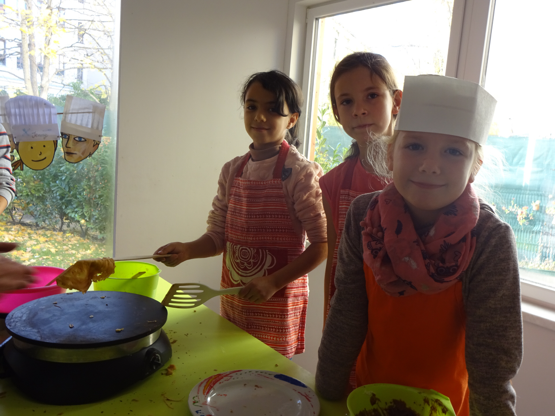 Neue Welten eröffneten sich auch den Kindern der Klasse 2c am 14. November im Kinderrestaurant. Pfannekuchen sind nicht gleich Pfannekuchen. Mit Leidenschaft standen die Miniköche am Herd und zauberten Blinis, Pancakes, japanische Dora-Yaki und mehr. Geschmeckt hat es am Ende allen!