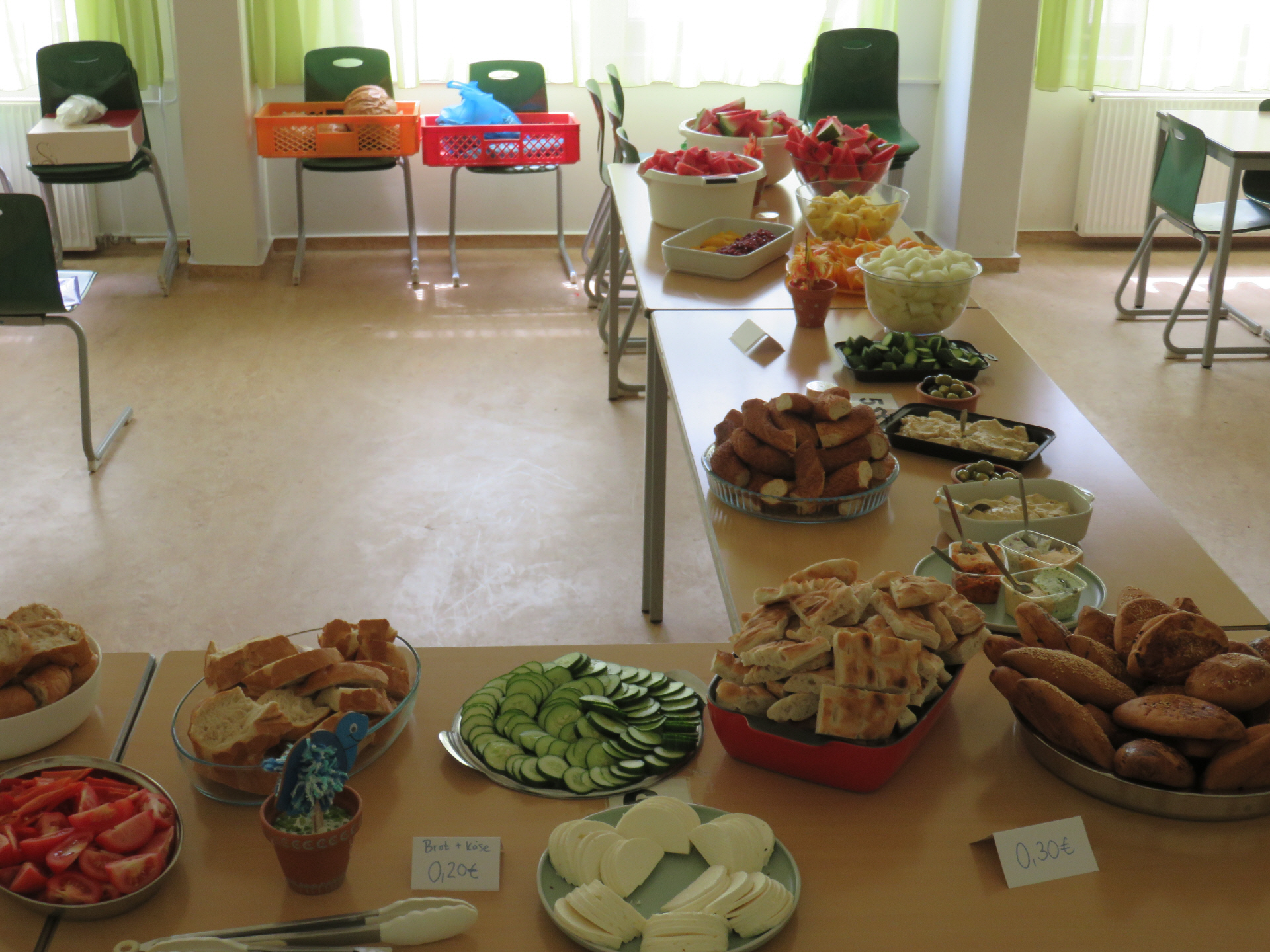 Am Mittwoch fand unter dem Thema der Projektwoche nach zweijähriger Pause das erste Mal wieder ein Schulfest statt. Eröffnet wurde es von den Kindern des GTA „Musik und Tanz“ auf dem Schulhof. Höhepunkt waren im Anschluss das internationale Buffet, was wir unter anderem mit Hilfe vieler großzügiger Spenden aufbauen konnten und das Glücksrad, wofür die Preise auch in vielen Fällen gesponsert wurden. Mit der Cocktailbar, der Popcornmaschine und einer Vielzahl von Spiel- und Bastelständen, die von den Lehrern und Erziehern der Schule betreut wurden, war der Nachmittag ein voller Erfolg.