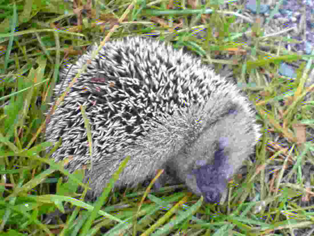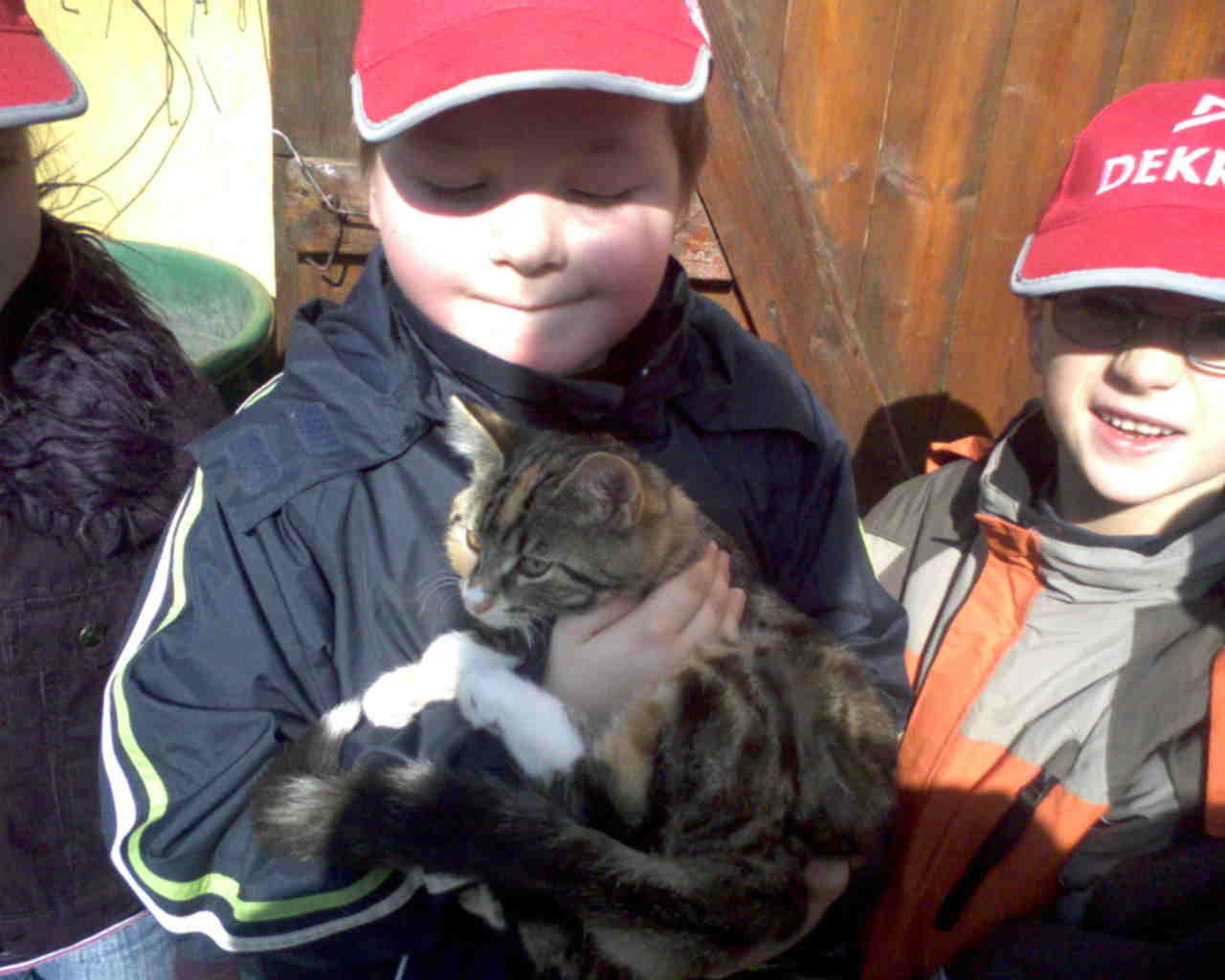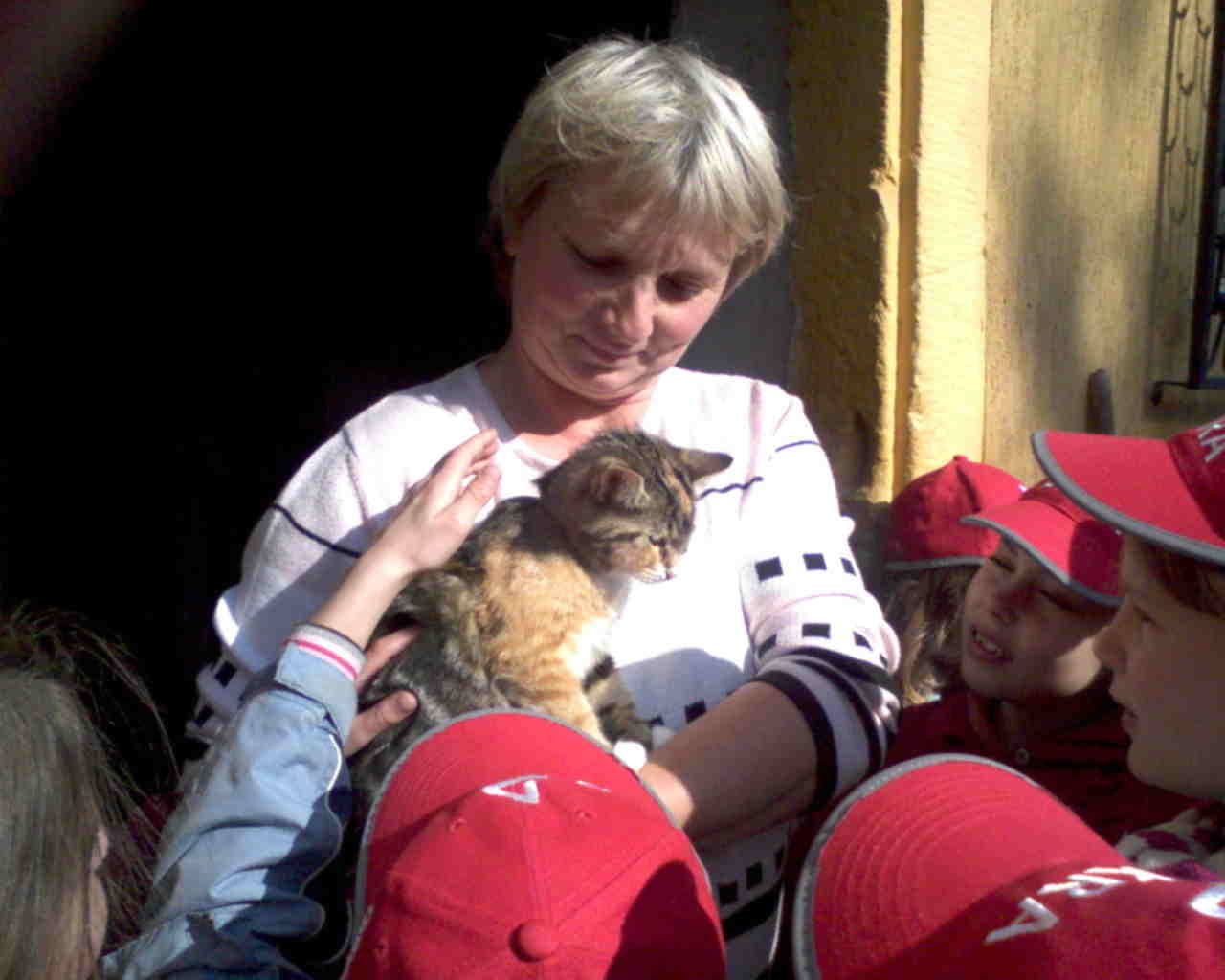 Am 26.9.08 sind wir wandern gewesen. Zuerst haben wir auf Connys Reiterhof Rast gemacht, um zu essen und zu trinken. Dann wollten wir Blätter sammeln. Auf dem Weg in den Helfenberger Park haben wir einen kleinen Igel gesehen. Er lag am Wegesrand und bewegte sich kaum. Was war mit ihm? Connys Vater brachte ihn in das Gewächshaus. Er sollte noch ein bisschen gefüttert werden und dann auf dem Reiterhof überwintern. Wir haben im Gewächshaus immer wieder nachgesehen, ob es ihm gut geht. Vielleicht besuchen wir ihn im Frühjahr wieder oder fragen Conny, ob er seinen Winterschlaf beendet hat. Connys kleine Katze bekam von den Kindern noch viele Streicheleinheiten. Im Helfenberger Park haben wir Bäume bewundert, die Naturdenkmäler sind. Die vielen Blätter, die wir gefunden hatten, wurden gepresst und in den Sachkundehefter geklebt. Dann haben wir erforscht, wie die Bäume heißen. Nun hat jedes Kind ein schönes Herbarium. | |