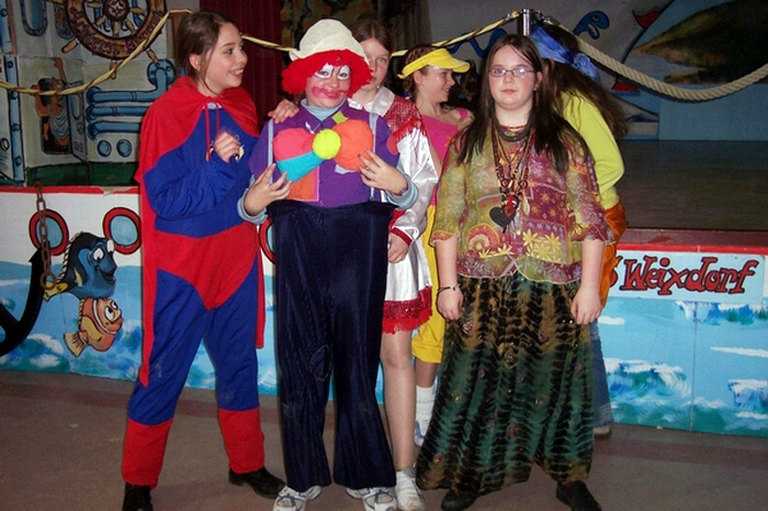 Am 28.02.06 war Fasching in der Mittelschule Weixdorf angesagt und der WKC hatte dafür Tänze und Spiele vorbereitet. Viele von uns waren originell verkleidet und sahen spitze aus. Es gab Prinzessinnen, Indianer, aber auch Jungen als Damen verkleidet.