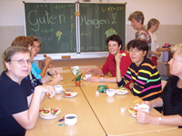 In der Arbeitspause bereiteten uns die Schüler des Neigungskures "Schülerfirma - Schlemmertempel" der Klasse 8 von Herrn Hütter ein reichhaltiges und abwechslungsreiches zweites Frühstück. Dies war bei den vielen rauchenden Köpfen dringend notwendig.