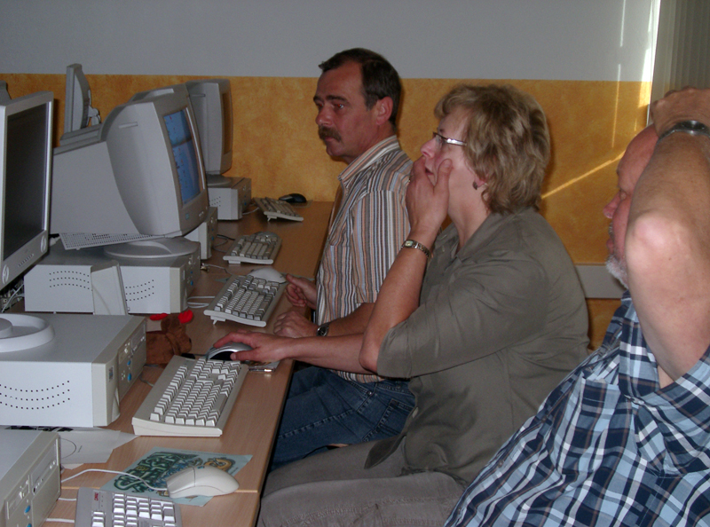 Ein arbeitsreicher Tag lag vor den Kollegen und den Informatiklehrern, die die Rolle des Weiterbildners übernommen hatten. Aber auch unsere Schüler halfen den wissbegierigen Kollegen. Eine Gruppe von Schülern der Klasse 10a betreute die Station 1 zur Arbeit im Internet völlig selbstständig. Mit viel Engagement und Einsatzbereitschaft entschlüsselten sie für ihre Lehrer z. B. die Welt der Suchmaschinen.