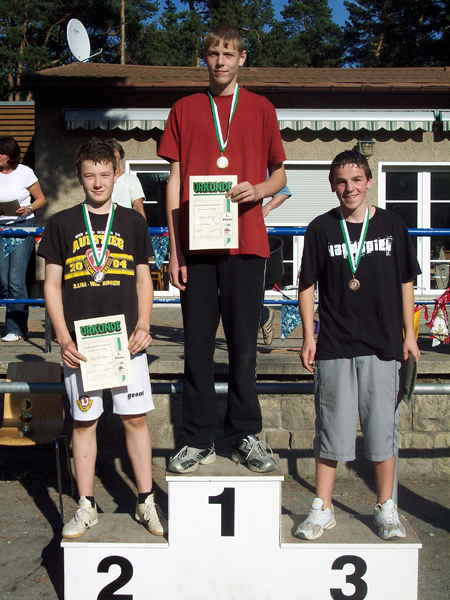 Zudem stellte Max Kramer mit 366 Punkten ein noch nie erreichtes Ergebnis im Dreikampf auf (Sprint, Kugelstoßen und Weitsprung). Und hier die Sieger im Dreikampf der entsprechenden Klassen: