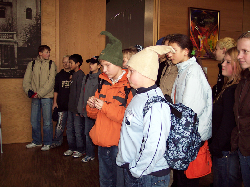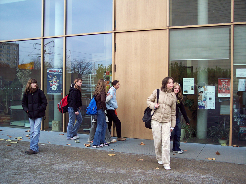 Achtung - Archiv: Dies ist die alte Webseite der Mittelschule WeixdorfAm 8. November 2006 unternahm die Klasse 7b einen Ausflug zur Dresdner Synagoge. Dieser Ausflug war schon lange geplant. Die meisten von uns waren sehr aufgeregt. Was würde uns erwarten? Aus dem Unterricht kannten wir ja nun schon einige Dinge wie die Thorarolle oder eine Kippa. Doch dies einmal von nahem zu sehen, war schon etwas ganz Besonderes. Als wir ankamen, erwarteten uns bereits Frau Herrmann, Frau Billaudelle und auch Herr Schubert sollte später dazu stoßen. Bevor wir in die Synagoge gingen, wurden wir in ein Nachbarhaus geführt. Unsere Leiterin erzählte uns erst einmal, wie wir uns in der Synagoge zu verhalten hatten.