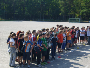 Das faire Kämpfen um die Siege in den Einzeldisziplinen Weitsprung, Kugelstoßen bzw. Medizinballweitwurf und Sprint, die zum Mehrkampf gewertet wurden, sowie den Wettkämpfen der Klassenstufen im Staffellauf, Fußball und Zwei-Felder-Ball machte den Schülern augenscheinlich sehr viel Spaß. Es waren immer wieder laute Anfeuerungsrufe und Jubelschreie zu hören und sogar hin und wieder Transparente zu sehen.