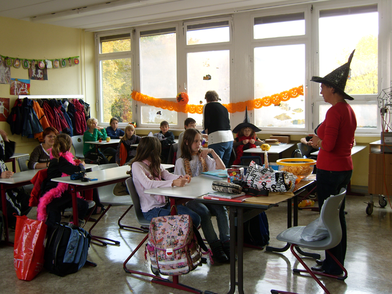 Wie in jedem Jahr erlebten die Schüler der fünften Klassen Englischstunden der besonderen Art: Sie feierten Halloween. Die Englischlehrerinnen hatten mehrere Stationen mit Wettbewerbscharakter vorbereitet. So wurden zum Abschluss zum Beispiel die tollsten Kürbisse, die schnellsten Fledermäuse, die längste Halloweengirlande oder der pfiffigste Quizteilnehmer prämiert. Die fleißigen Bäckerinnen der 8.Klasse sorgten noch für eine Extraüberraschung- se versorgten alle mit ofenfrischen Muffins.