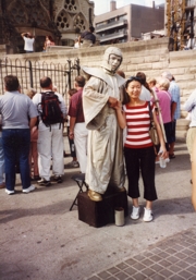 vor der Sagrada Familia und ließ sich mit Touristen fotografieren. Viele andere Männer konnten wir auch auf der Rambla sehen.
